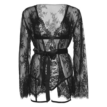Body con vestaglia Teddy, lace robe & ribbon tie