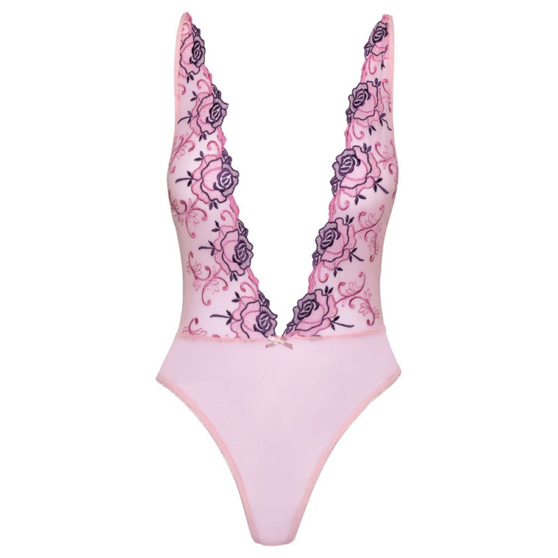Body rosa trasparente con ricami