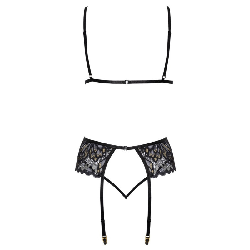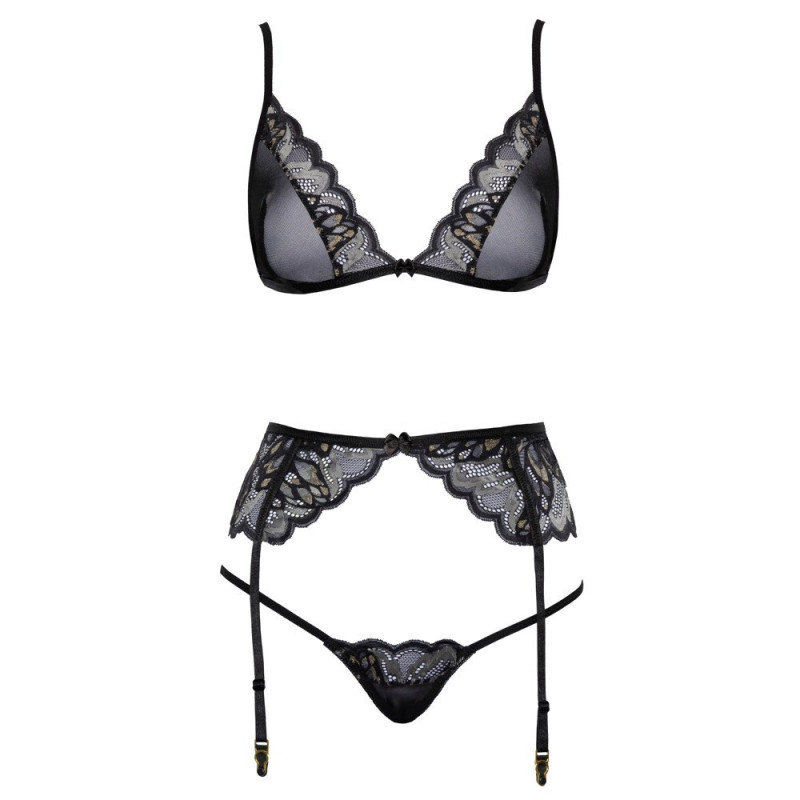 Esclusivo: pizzo d'effetto in stile elegante! Morbido set reggiseno, reggicalze e perizoma di kissable, realizzato in pizzo effetto prezioso misto a powernet. Morbido ed elastico su tutto il perimetro per il massimo comfort. Reggiseno con spalline regolabili e chiusura a gancio sulla schiena, proprio come il reggicalze con bretelle regolabili. Questo sofisticato perizoma seduce con le sue due strette fasce elastiche che si uniscono all'inguine. 90% poliammide, 10% elastan. Consegna senza calze.