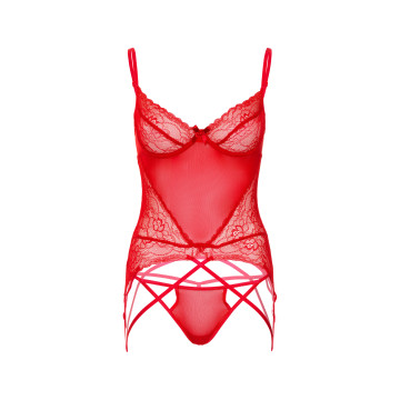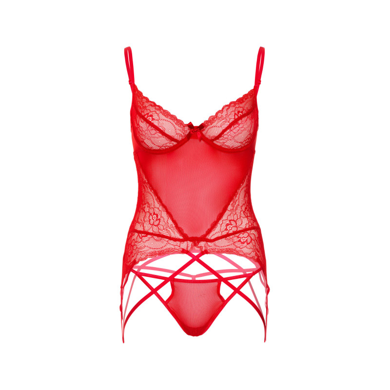 Corsetto con perizoma e reggicalze Lace and Mesh Cami Set