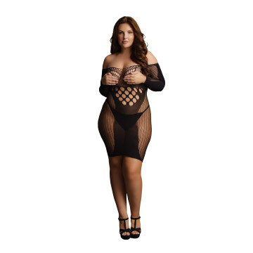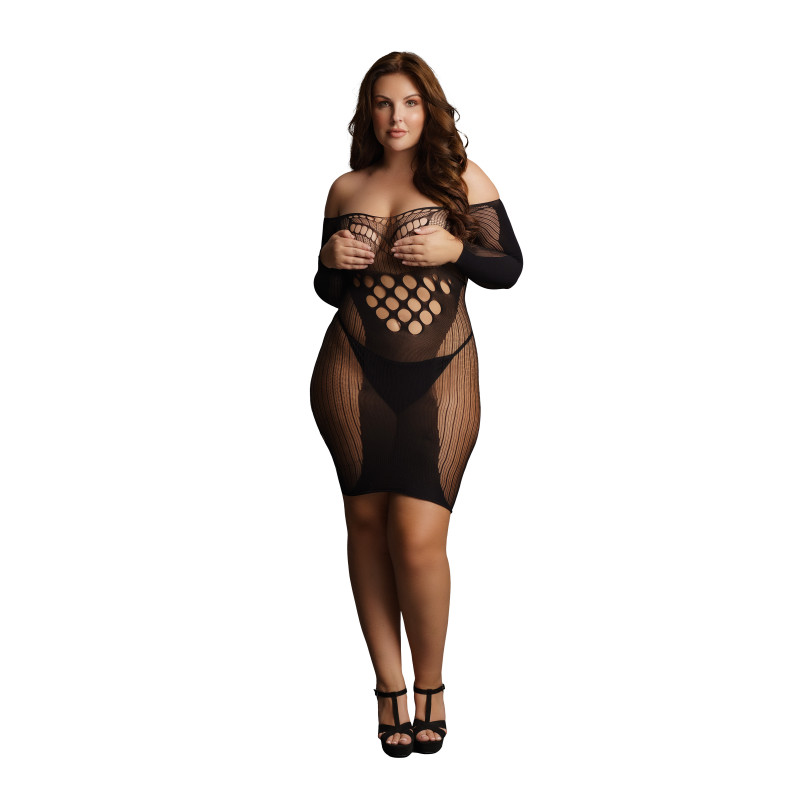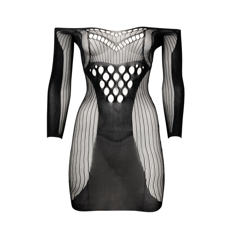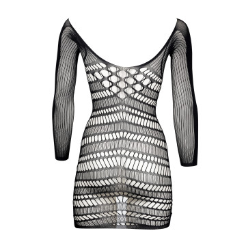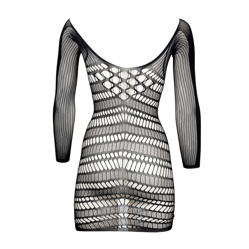 Mini abito a rete a maniche lunghe con disegni ritagliati circolari sotto il busto. Il design frontale opaco a contrasto accentuerà la forma del corpo. Il morbido tessuto super elasticizzato si adatta alle taglie dalla S alla 5XL.