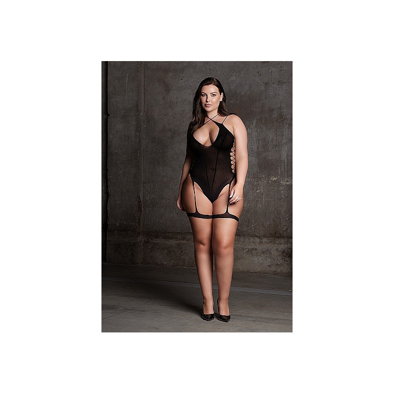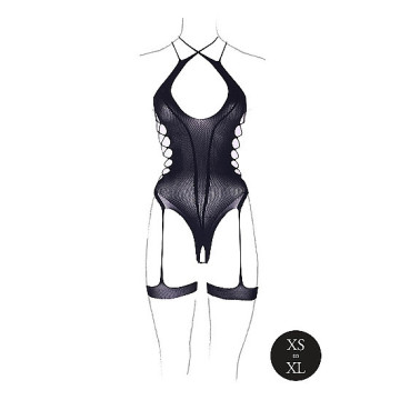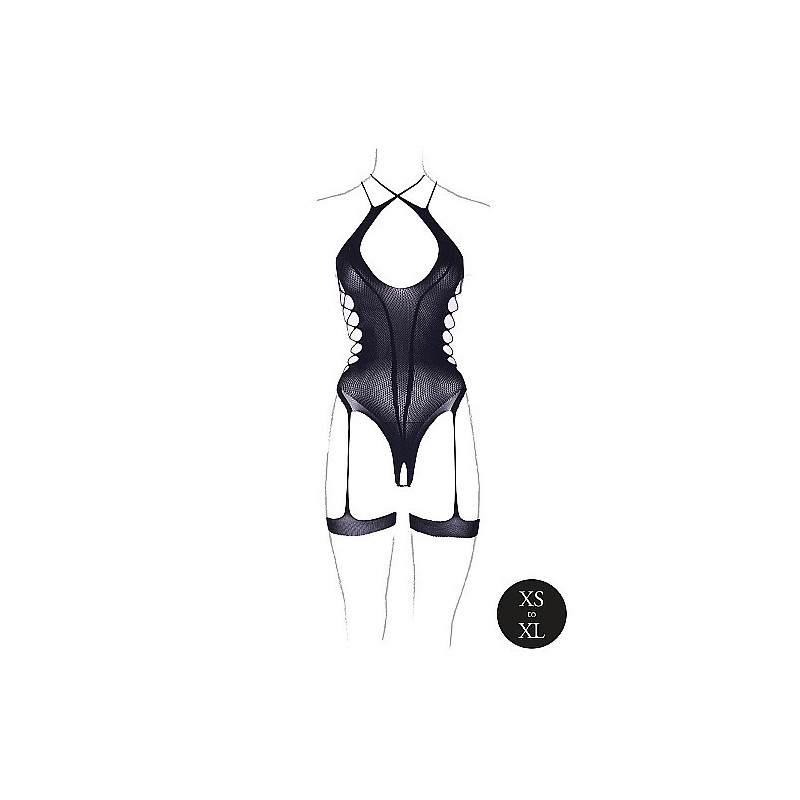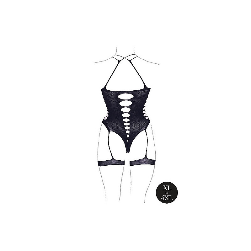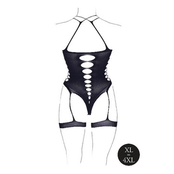 Siate maliziose con questo stuzzicante body Metis con reggicalze! Il motivo a rete mette in risalto il vostro punto vita e le toppe aperte sul retro attirano l'attenzione dove volete: il vostro fondoschiena. Metis è realizzato con materiali pregiati che modellano la figura, ma è anche elasticizzato dalla taglia XS fino alla XXXXL. Le spalline sono posizionate in modo da mettere in evidenza il décolleté e sono comode intorno al collo.