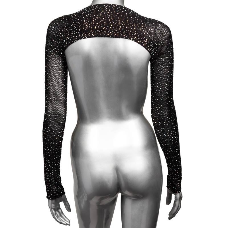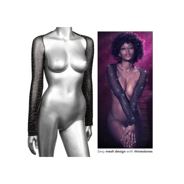 Guardate come si sciolgono alla vostra vista con lo scintillante Radiance Shoulder Shrug. Questo seducente coprispalle avvolge le vostre curve con una rete elastica, strass scintillanti e maniche a tutta lunghezza. Avvolgete le vostre curve in una rete morbida e traspirante e scintillate a ogni movimento grazie agli accenti di strass scintillanti. La rete elastica e la vestibilità aderente al corpo sono fatte apposta per i giochi passionali. Il coprispalle può essere sovrapposto per un look da festival feroce o indossato da solo come lingerie lussuriosa. Il body in morbida rete si allunga per adattarsi alla maggior parte delle taglie standard. Lavare solo a mano.