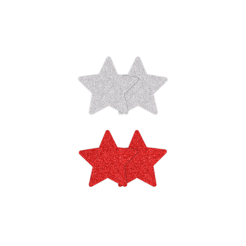 Copricapezzoli a forma di stella Pasties Glitter Stars 2 Pair red & silver