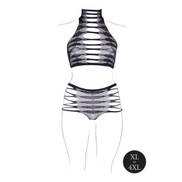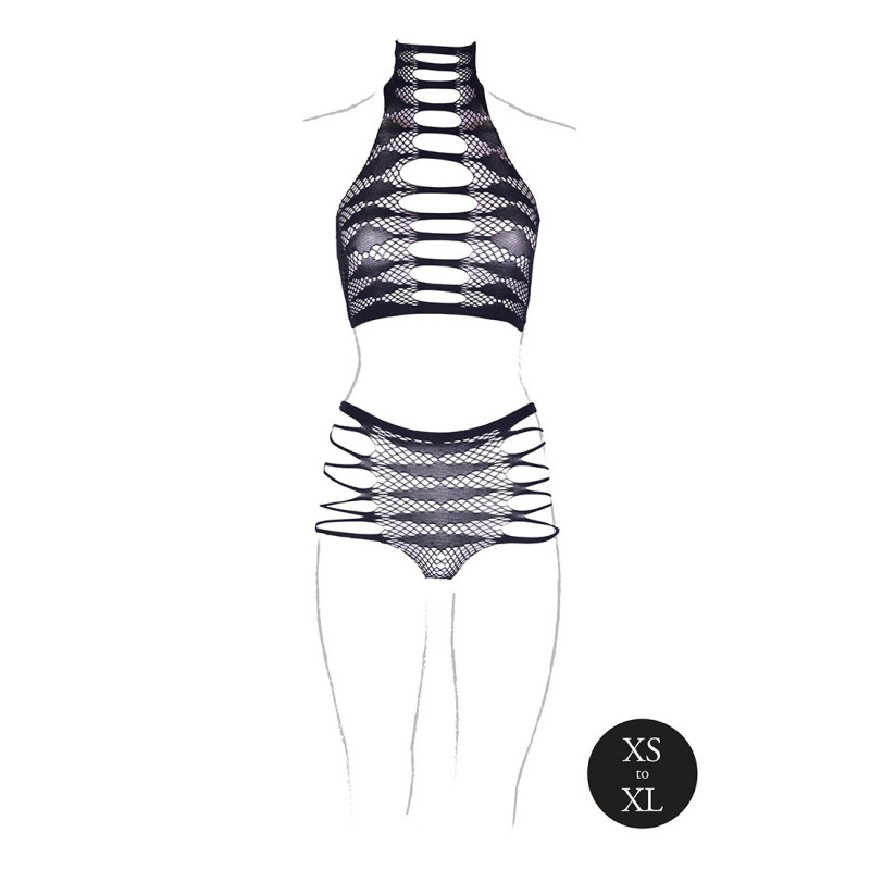 Riscaldiamo la notte! Questo due pezzi Carpo è un vero e proprio showtopper. Il design è tagliente, duro ed estremamente sexy. Sia il top che la mutandina presentano motivi diversi in vari punti, mostrando la pelle in modo seducente. La qualità premium di questo design abbraccerà la vostra figura nei punti giusti, mentre l'elasticità rende Carpo una vestibilità perfetta per le taglie dalla X alla XL. Chi sarà la vostra conquista della serata?