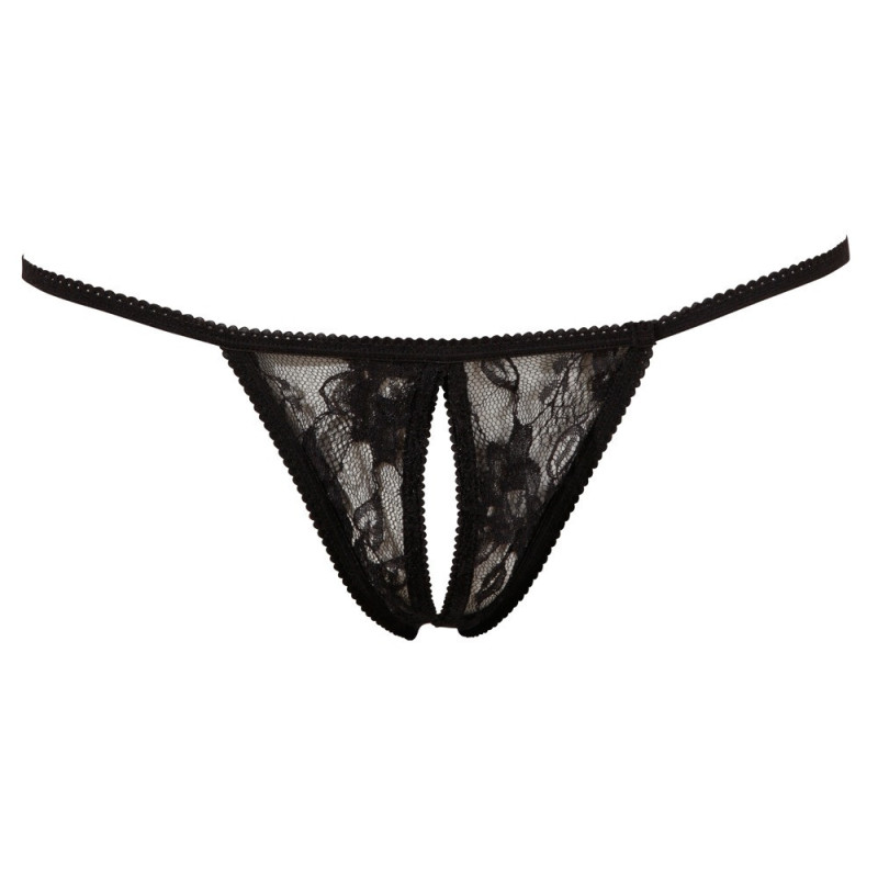 Scarso perizoma in pizzo floreale con invitante cavallo aperto.