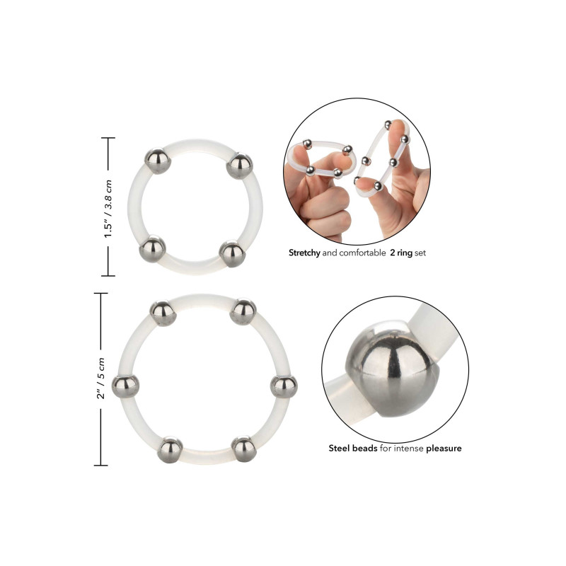 L'appassionato set di anelli in silicone con perline in acciaio è realizzato per migliorare, intensificare e intensificare l'estasi. Gli anelli in silicone elastici ma robusti si schiacciano per un sostegno forte, mentre le perle in acciaio inossidabile intensificano il piacere Gli anelli ultra elastici e confortevoli aumenteranno sicuramente il piacere aumentando la resistenza, la sensibilità e la circonferenza. Attendo con ansia un'esperienza di piacere esplosiva ad ogni colpo di piacere delle perle di piacere in acciaio. Questo anello forte e di supporto asseconda il tuo uomo con maggiore resistenza, circonferenza e sensibilità, mentre puoi assaporare la sua maggiore resistenza e circonferenza, le elettrizzanti perle di stimolazione