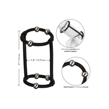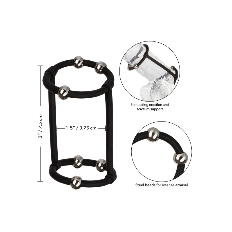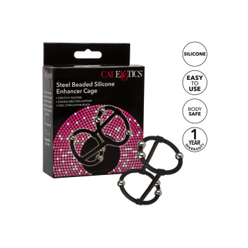 Realizzato per migliorare l'estasi, intensificare e intensificare ogni volta che si fa scorrere sulla gabbia dell'amplificatore in silicone con perline d'acciaio. La robusta, ma elastica gabbia in silicone a doppio amplificatore fornisce supporto, mentre le perline di piacere mobili in acciaio entusiasmano te e la persona amata. Attendo con ansia un'esperienza di piacere esplosiva con ogni movimento stuzzicante delle sfere del piacere in acciaio con posizionamento regolabile e mobile. Questa gabbia ad anello forte e di supporto coccolerà il tuo uomo con maggiore resistenza, circonferenza e sensibilità, mentre puoi goderti la sua maggiore resistenza e circonferenza, le eccitanti perline di stimolazione ti stuzzicano in un paese delle meraviglie orgasmico.
