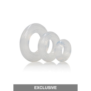 Soddisfa le richieste erotiche del tuo amante con il versatile Premium Silicone Ring Set. Il set di 3 pezzi comprende anelli per il pene di medie, grandi e XL dimensioni, progettati per aumentare la circonferenza e il supporto della resistenza durante il piacere intimo prolungato. Il set è realizzato in silicone morbido e liscio, igienicamente superiore, per una vestibilità confortevole e un'usura piacevole. Gli anelli trasparenti e super elastici sono ultra spessi, totalmente privi di cuciture e sensualmente sagomati per garantire la massima soddisfazione. Preparatevi a godere di un picco di prestazioni che va avanti e avanti.Gli anelli durevoli e robusti offrono infinite possibilità per rendere più piccante la vostra routine in camera da letto. Lascia correre la tua immaginazione ed esplora modi divertenti e creativi per avvolgere il tuo membro. I rinforzatori facili da usare sono perfetti per incontri intimi prolungati con il tuo amante. Per aumentare la sensibilità, usa sempre un lubrificante di qualità con questi giocattoli di potenziamento. Prima e dopo l'uso, pulite i cock ring elastici con uno spray detergente per giocattoli o lavateli con acqua e sapone neutro.