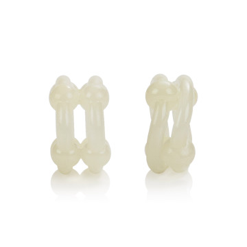 Goditi il doppio del delizioso piacere con Island Rings Double Stacker. Questo stimolatore di erezione versatile e facile da usare fornisce un doppio supporto per una maggiore resistenza, prestazioni di punta e giochi prolungati. Gli anelli rosa super elastici sono forniti in coppia e sono progettati per essere indossati comodamente durante gli incontri intimi prolungati. Gli anelli sono realizzati in morbido e liscio TPE, con una finitura rosa, e sono dotati di due anelli collegati per il massimo supporto. L'esotico duo di anelli elastici per il cazzo misura 0,75"/2 cm e sono ornati con torsioni sensuali e perline di stimolazione. Per l'uso, selezionare l'anello preferito e semplicemente far scorrere il custode dell'erezione sul pene eretto, e prepararsi a godere di un'elevata estasi. Per aumentare le sensazioni piacevoli e l'eccitazione formicolante ancora di più, usa sempre un lubrificante di qualità con questo giocattolo.Esplora i tuoi sogni caldi più selvaggi e le fantasie segrete, dopo le luci spente, con questi anelli. Gli anelli di supporto rosa, flessibili e durevoli sono perfetti per gli utenti alle prime armi e per quelli esperti e sono perfetti per esplorazioni spontanee e intime. Infilate il rinforzatore a doppia pila e indulgete in un allettante piacere di dimensioni super, ogni volta che siete in vena di divertimento intimo. Prima e dopo ogni uso, ricordati di pulire gli anelli di supporto con acqua calda e sapone, o con uno spray detergente per giocattoli.