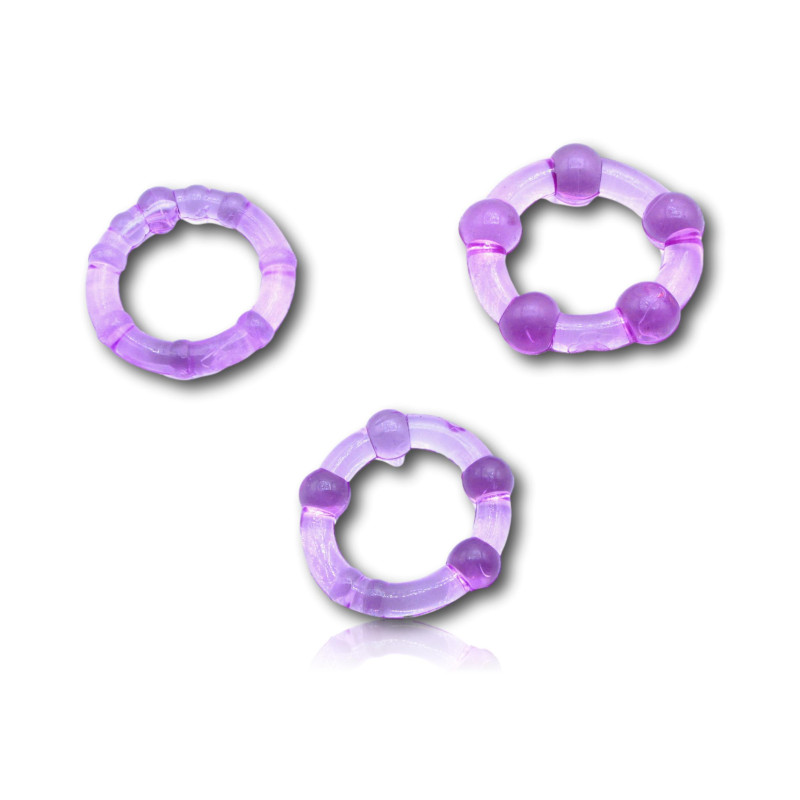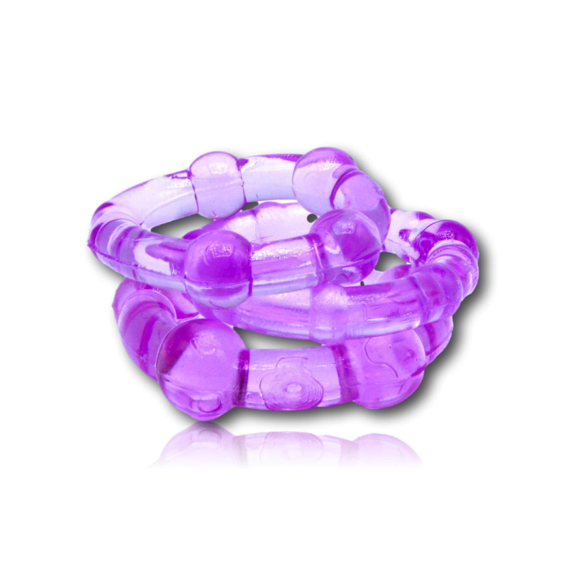 Gli anelli sono realizzati in TPR morbido, liscio e flessibile e sono adornati con perle di piacere sensuali e noduli di stimolazione, per una maggiore sensibilità.