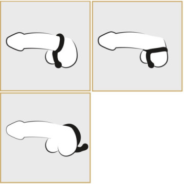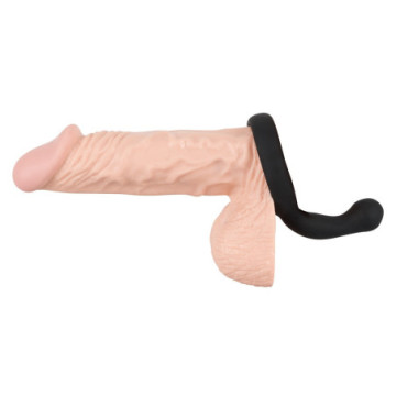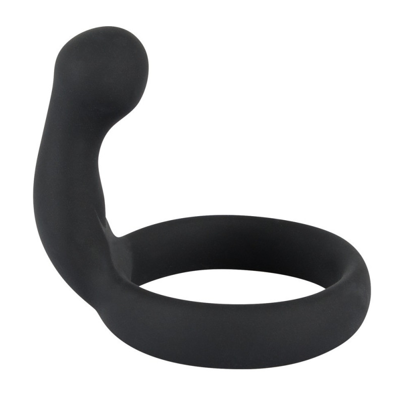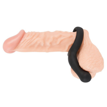 Questo anello per il pene nero solo leggermente allungabile racchiude saldamente il SUO pene per le forti erezioni e stimola inoltre il suo perineo con lo stimolatore.