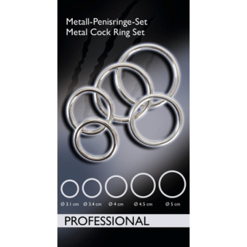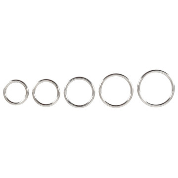 Set di 5 anelli per il pene realizzati senza soluzione di continuità. Ø 3,1-5 cm. Materiale: acciaio al carbonio.
