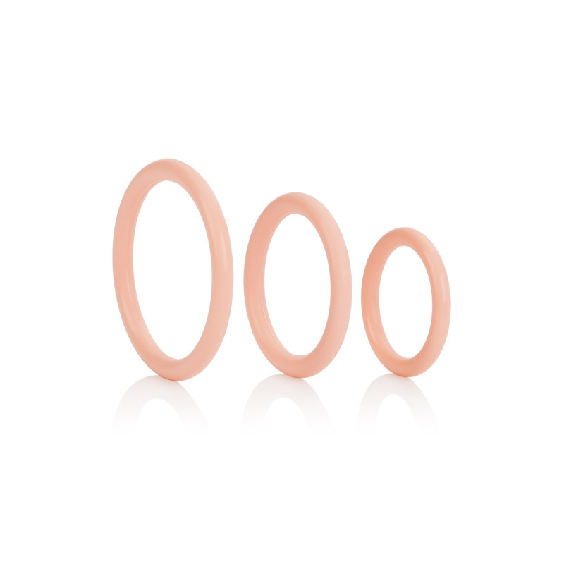 Godetevi il triplo delle sensazioni erotiche e del piacere con i Tri-Ring. I discreti stimolatori di erezione sono facili da usare e ottimi per l'elevazione istantanea delle prestazioni, ogni volta che siete in vena di seduzione sensuale e soddisfazione senza fine. Gli anelli sono forniti in una scelta di dimensioni per un'estasi orgasmica massimizzata e prolungata. Gli stimolatori multiuso e riutilizzabili comprendono 3 diverse dimensioni che sono progettate per adattarsi comodamente al pene eretto, per un supporto di resistenza e un divertimento di gioco prolungato. Gli eleganti anelli sono realizzati in gomma liscia e flessibile. Per usarli, infilare l'anello della misura preferita sul pene eretto e farlo scorrere fino alla base. L'elastico fornisce il supporto per un'intimità più duratura ed erezioni dure come la roccia. Per aumentare i formicolii e le sensazioni piacevoli, si raccomanda di usare sempre un lubrificante di qualità con questo giocattolo.Gli stimolatori facili da usare sono ideali per la prima volta e per gli utenti esperti e perfetti per il gioco spontaneo e senza limiti. Il trio di anelli di gomma per l'erezione è ottimo per l'esplorazione dell'autogratificazione e per un divertimento esteso nei preliminari di coppia. Usa gli anelli medio, grande ed extra grande per migliorare la resistenza e le prestazioni per un'esperienza strabiliante ogni volta. Prima e dopo ogni uso, pulite gli anelli di gomma con uno spray detergente per giocattoli o lavateli in acqua saponata.