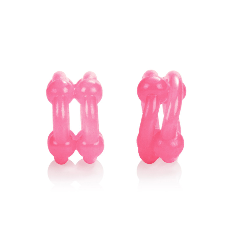Goditi il doppio del delizioso piacere con Island Rings Double Stacker. Questo stimolatore di erezione versatile e facile da usare fornisce un doppio supporto per una maggiore resistenza, prestazioni di punta e giochi prolungati. Gli anelli rosa super elastici sono forniti in coppia e sono progettati per essere indossati comodamente durante gli incontri intimi prolungati. Gli anelli sono realizzati in morbido e liscio TPE, con una finitura rosa, e sono dotati di due anelli collegati per il massimo supporto. L'esotico duo di anelli elastici per il cazzo misura 0,75"/2 cm e sono ornati con torsioni sensuali e perline di stimolazione. Per l'uso, selezionare l'anello preferito e semplicemente far scorrere il custode dell'erezione sul pene eretto, e prepararsi a godere di un'elevata estasi. Per aumentare le sensazioni piacevoli e l'eccitazione formicolante ancora di più, usa sempre un lubrificante di qualità con questo giocattolo.Esplora i tuoi sogni caldi più selvaggi e le fantasie segrete, dopo le luci spente, con questi anelli. Gli anelli di supporto rosa, flessibili e durevoli sono perfetti per gli utenti alle prime armi e per quelli esperti e sono perfetti per esplorazioni spontanee e intime. Infilate il rinforzatore a doppia pila e indulgete in un allettante piacere di dimensioni super, ogni volta che siete in vena di divertimento intimo. Prima e dopo ogni uso, ricordati di pulire gli anelli di supporto con acqua calda e sapone, o con uno spray detergente per giocattoli.