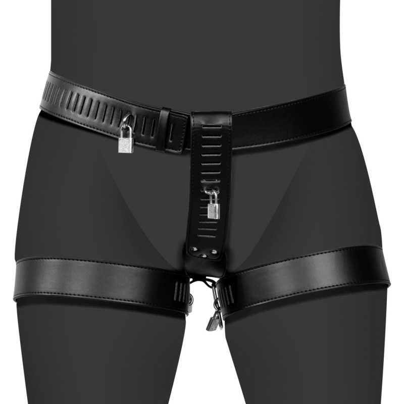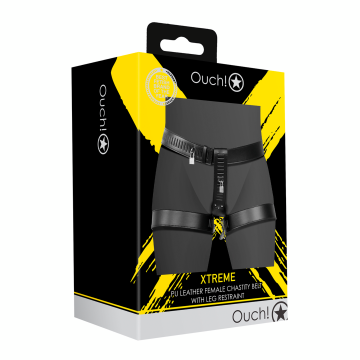 Bloccate! La cintura di castità femminile OUCH! Xtreme Female Chastity Belt with Leg Restraint è progettata per bloccare l'area più intima, dandovi il controllo completo sul vostro partner. La cintura è realizzata in pelle PU di alta qualità ed è dotata di cinghie regolabili per la vita, l'inguine e le cosce, per garantire una vestibilità perfetta per ogni corpo. Quando si esplorano le profondità del BDSM, questa cintura di castità promette un viaggio eccitante. Viene fornita con serratura e chiavi.