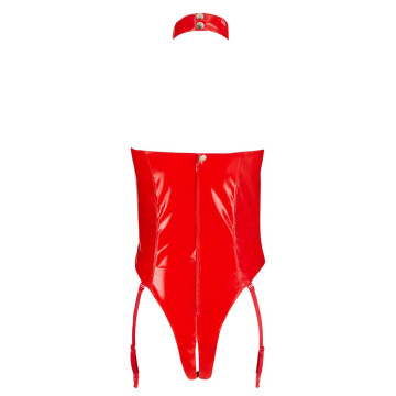 lingerie body sexy per donna aderente rosso cin lattice latex con apertura seno e intimo