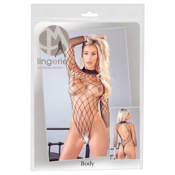 Il corpo è costituito da una rete molto ruvida ed elastica che consente intuizioni mozzafiato e rivela anche il passo in modo eccitante. Il corpo è lavorato più da vicino sul collo e sul braccio. Con ampio intaglio nella parte posteriore e apertura extra alta per le gambe.