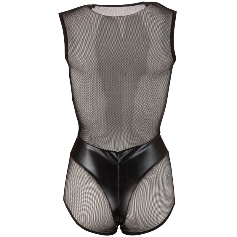 Body senza maniche in un mix di effetto bagnato e mesh Con cerniera attraverso il cavallo Scollatura in vita Il tuo momento clou erotico! Body senza maniche realizzato con una combinazione di effetto bagnato e rete in nero. Con cerniera attraverso il cavallo. 60% poliammide, 30% poliestere, 10% elastan.