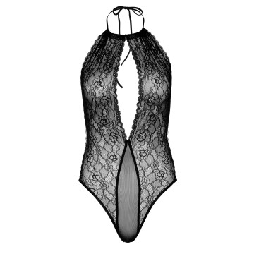 Orsacchiotto di pizzo con buco della serratura - Orsacchiotto profondo con spago e fondoschiena aperto, realizzato in pizzo delicato, rete trasparente e cinghie elastiche per la migliore vestibilità per le tue curve. Sexy dettaglio anello in metallo sul retro.