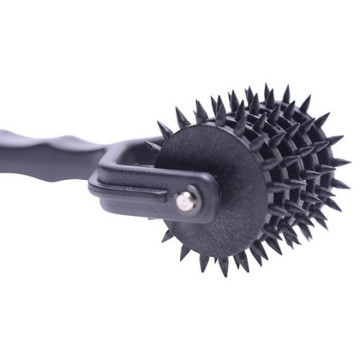 Spiked 5 Row Pinwheel è una ruota dentata che esegue piccole torture di dominazione attraverso subdole punture di piacere sulla pelle e le altre aree sensibili del vostro corpo. Questa piccola ruota di piacevole tortura è stata progettata con cinque file di equidistanti spilli in metallo che girando sopra la carne, rendono il gioco molto tagliente, restituendo la sensazione delle punture di spillo che possono essere, a seconda della pressione apportata, più o meno profonde.