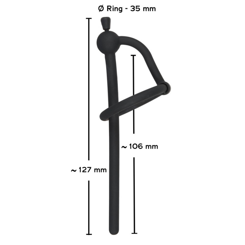 Il giocattolo per i conoscitori dei piaceri uretrali! Plug pene cavo con anello per il glande mobile e tappo rimovibile. Tutti completamente senza cuciture e fatti del miglior silicone per giocare e indossare senza preoccupazioni. Lunghezza totale 12,7 cm. Profondità di inserimento 10,6 cm. Ø 0,6 cm. Anello Ø 3,5 cm. Peso 9 g. Silicone, PU.