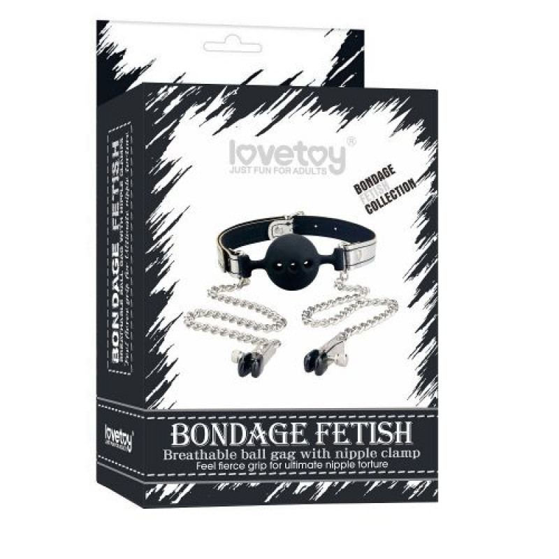Morso bondage con pinze per capezzoli Breathable Ball Gag with Nipple Clamp