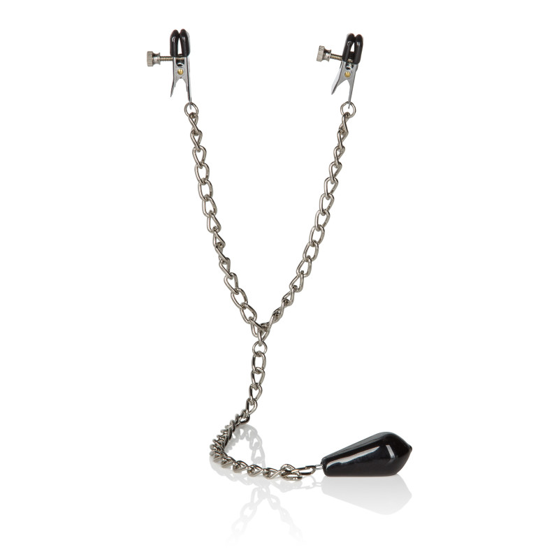 Godetevi le ultime squisite e orgasmiche sensazioni di piacere/dolore con i morsetti pesati per capezzoli Nipple Play. I morsetti per capezzoli completamente regolabili sono progettati per l'eccitazione e la stimolazione intima e il gioco erotico esteso. I morsetti multiuso sono ideali per chi sperimenta per la prima volta e per gli esploratori esperti che amano le avventure esotiche sul lato selvaggio.I morsetti stuzzicanti e stuzzicanti sono realizzati in ferro non appannante e senza nichel e misurano 1,75"/4,5 cm. I mini morsetti, completamente regolabili, hanno morbidi e comodi cuscinetti in PVC senza ftalati e viti a torsione per una facile regolazione del piacere personale. I morsetti sono attaccati insieme tramite una robusta catena di ferro di alta qualità che è adornata con un ciondolo decorativo con peso, che pesa 4.5 oz./13kg. Il peso aggiunto aumenta la stimolazione sensuale e intensifica la sensibilità dei capezzoli. Per massimizzare l'esperienza, applica un gel per l'eccitazione o un lubrificante di qualità sui capezzoli per attaccare i morsetti ponderati. I morsetti sono adatti al piacere di lui e di lei, e possono anche essere usati su altre zone ultrasensibili del corpo. I morsetti ponderati esotici sono ideali per il gioco fetish e BDSM, e ottimi per sperimentare. Prima e dopo ogni utilizzo, pulire i versatili morsetti con uno spray detergente per giocattoli.