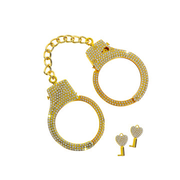 Mantieni lo stile e il controllo sul tuo sottomesso con queste manette pesanti, placcate in oro e tempestate di strass. I polsini sono regolabili. Comprese 2 chiavi e custodia.