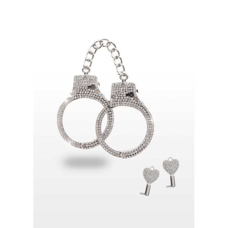 Mantieni lo stile e il controllo sul tuo sottomesso con queste manette pesanti, placcate in argento e tempestate di strass. I polsini sono regolabili. Comprese 2 chiavi e custodia.