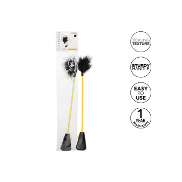 La cattiveria e la gentilezza sono perfettamente abbinate nel flirty Boundless Feather Crop. Questo doppio raccolto BDSM è fatto per giocare come un audace raccolto in ecopelle e una piuma solleticante. Passate con disinvoltura dal feroce allo stuzzicante, mentre usate l'eccitante frustino per dare dei colpetti o solleticare il vostro sottomesso con le civettuole piume. Elevate i sensi e sfumate i confini del piacere e del dolore.