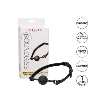 La ball gag traspirante Boundless è l'accessorio erotico perfetto per le coppie che vogliono sperimentare il gioco erotico di contenzione o per i feticisti più accaniti che vogliono assecondare i loro desideri più profondi. Lasciatevi andare alle vostre fantasie più cattive mentre fissate il bavaglio a sfera in silicone flessibile, le cinghie in pelle vegana di design e la chiusura con fibbia regolabile. La palla flessibile e traspirante trasmette una passione primordiale alla vostra camera da letto, mentre ogni gemito soffocato aumenta il piacere e intensifica l'eccitazione di tutti i partecipanti. Immergetevi in un desiderio avventuroso e abbandonatevi alle vostre fantasie più erotiche con questo bavaglio a sfera traspirante e sensazionalmente confortevole.