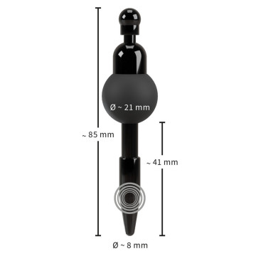 Massiccio plug per pene vibrante di PENISPLUG per sensazioni intense, massaggio eccitante, piacevole allungamento e controllo dello sperma. Dal design sensibile con una punta stretta e affusolata. Il piccolo vibratore incorporato nel silicone funge da tappo. Comoda vibrazione con la semplice pressione di un pulsante.