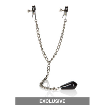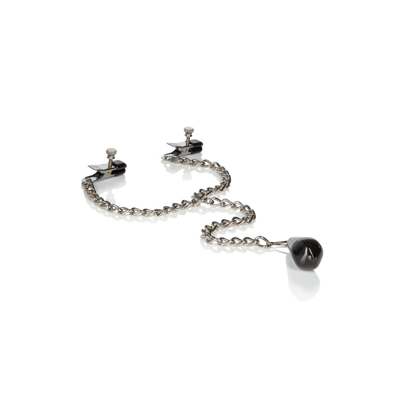 Godetevi le ultime squisite e orgasmiche sensazioni di piacere/dolore con i morsetti pesati per capezzoli Nipple Play. I morsetti per capezzoli completamente regolabili sono progettati per l'eccitazione e la stimolazione intima e il gioco erotico esteso. I morsetti multiuso sono ideali per chi sperimenta per la prima volta e per gli esploratori esperti che amano le avventure esotiche sul lato selvaggio.I morsetti stuzzicanti e stuzzicanti sono realizzati in ferro non appannante e senza nichel e misurano 1,75"/4,5 cm. I mini morsetti, completamente regolabili, hanno morbidi e comodi cuscinetti in PVC senza ftalati e viti a torsione per una facile regolazione del piacere personale. I morsetti sono attaccati insieme tramite una robusta catena di ferro di alta qualità che è adornata con un ciondolo decorativo con peso, che pesa 4.5 oz./13kg. Il peso aggiunto aumenta la stimolazione sensuale e intensifica la sensibilità dei capezzoli. Per massimizzare l'esperienza, applica un gel per l'eccitazione o un lubrificante di qualità sui capezzoli per attaccare i morsetti ponderati. I morsetti sono adatti al piacere di lui e di lei, e possono anche essere usati su altre zone ultrasensibili del corpo. I morsetti ponderati esotici sono ideali per il gioco fetish e BDSM, e ottimi per sperimentare. Prima e dopo ogni utilizzo, pulire i versatili morsetti con uno spray detergente per giocattoli.