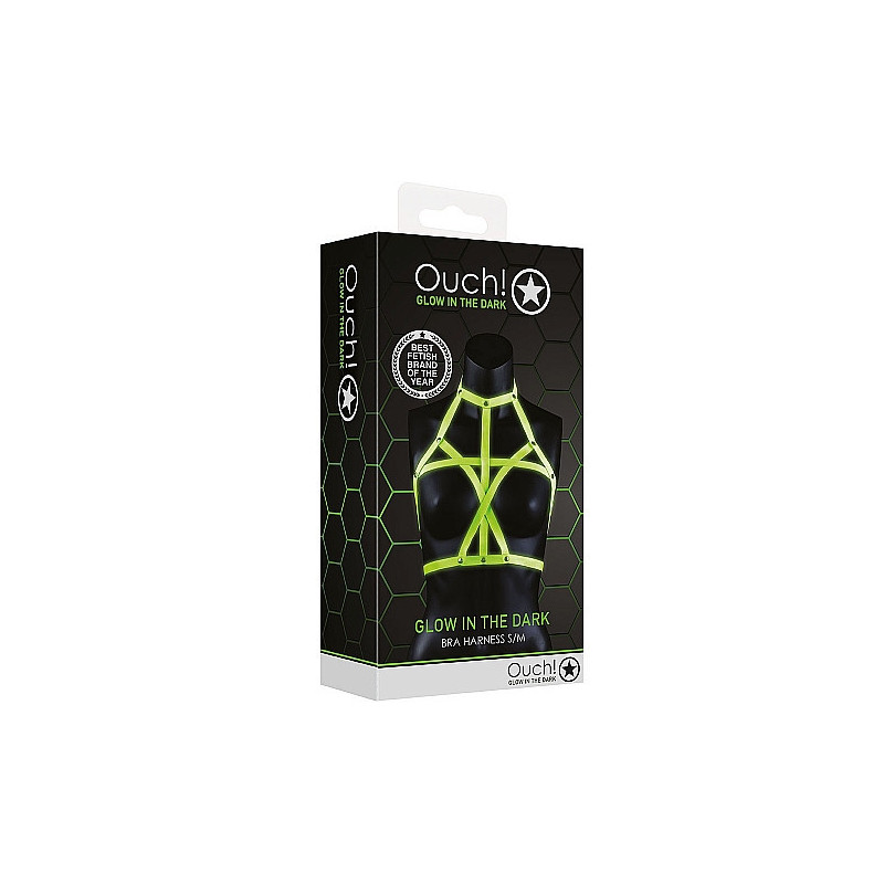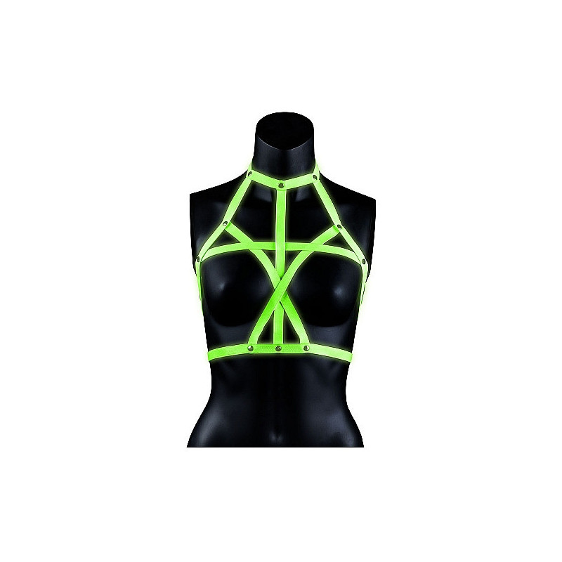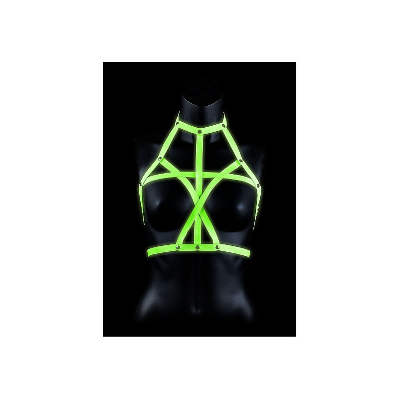 Pettorina bondage Bra Harness - Glow in the Dark - Neon Green/Black