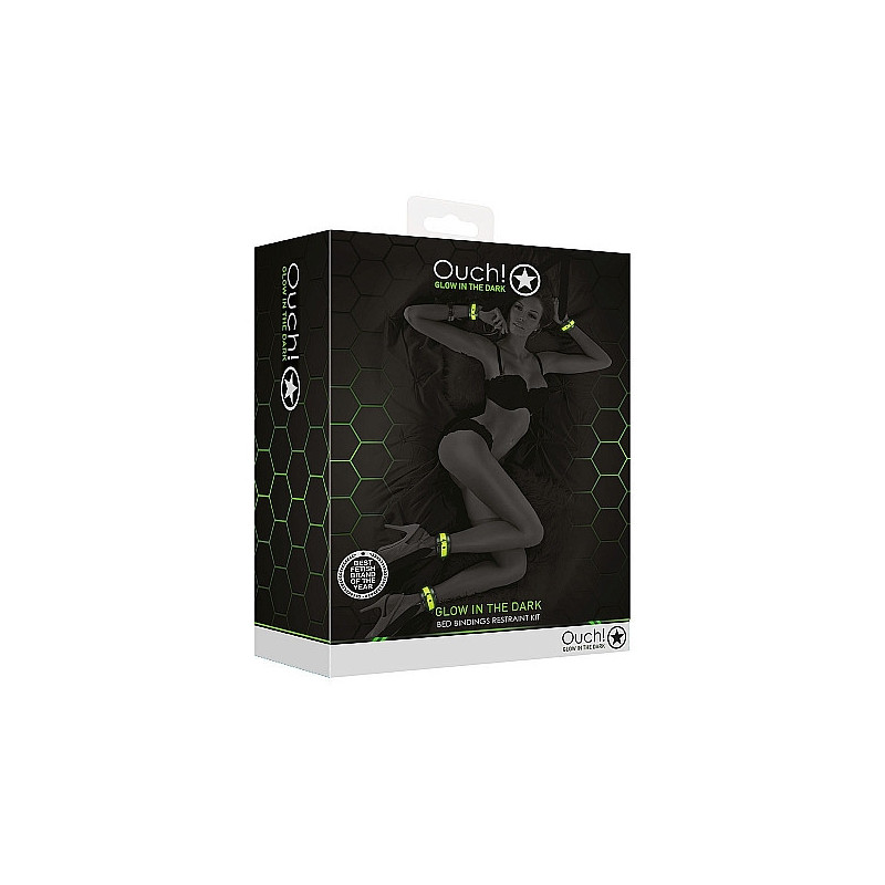 Glow-In-The-Dark di Ouch!, il futuro del bondage è qui. Progettato con un'estetica bondage autentica, ma con il piacere aggiunto delle proprietà luminescenti al buio, i dettagli in verde fluorescente trasformeranno ogni evento in qualcosa di unico.