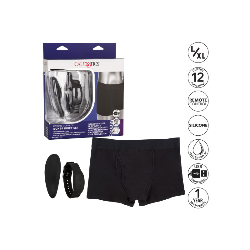 Il Boxer Brief Set con telecomando è fatto per avventurosi cercatori di piacere, con un boxer extra comodo abbinato a un potente mini vibratore e un discreto controller da polso. L'elegante, ma discreto controller del braccialetto rende facile per te o il tuo amante controllare l'intensità della vibrazione con il semplice tocco di un pulsante. Ogni volta che o ovunque ti porti la passione, il raggio di 32 piedi di questo appassionato mini vibratore e 12 intense funzioni di vibrazione sono pronte per il gioco. I boxer discreti e aderenti hanno 3 tasche interne per stimolatori per un posizionamento personalizzato dello stimolatore.