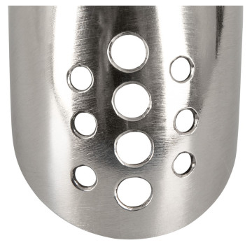 Lunghezza totale 13,5 cm, lunghezza della gabbia 12 cm, Ø 3,5 cm. Anello del testicolo Ø 4,4 cm. Peso 193 g. Metallo.