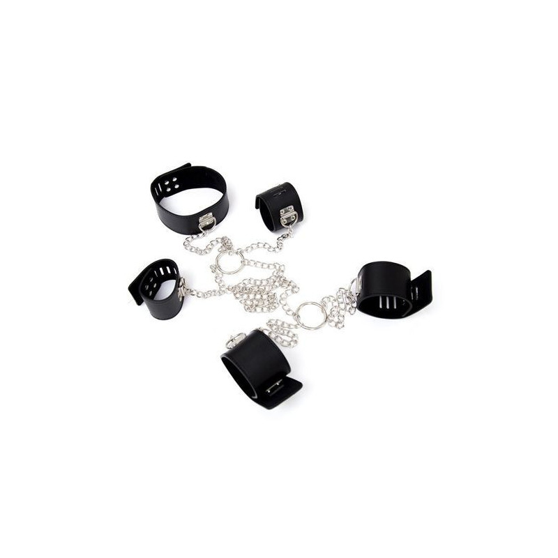 Cosa è? Un costrittivo realizzato in similpelle e catene, composto da collare, polsiere e cavigliere, che può tenere bloccato tutto il corpo. Un oggetto di costrizione bdsm che vi farà realizzare le vostre fantasie di dominazione, anche quelle più inconfessate. Con Fetish Art non c’è budget che tenga, potrete sperimentare ogni vostro più recondito desiderio. A Cosa serve? Potrete sottoporvi al volere del vostro partner, piegandovi al suo desiderio di comando oppure regalarvi un emozione di dominio con questo splendido oggetto fetish, un oggetto di costrizione totale e accattivante. Movimenterete non poco le vostre serate grazie a questo favoloso oggetto erotico costrittivo con collare che limita la mobilità degli arti, trasformando chiunque lo indossi, in un animale del sesso, tenendolo costantemente sotto controllo! Con questo strumento per le pratiche sadomaso potrete stabilire un gioco slave-master forte, in cui decidere di abbandonarvi al volere del partner oppure, al contrario, comandarlo voi. Come si usa? Basta semplicemente legare il collare intorno al collo e le rispettive polsiere e cavigliere del bottom, il risultato sarà una sorta di blocco totale degli arti, proprio come si fa con gli animali, uno strumento di piacere estremo. Dopo l’utilizzo, pulire il sex toy con un panno igienizzante.