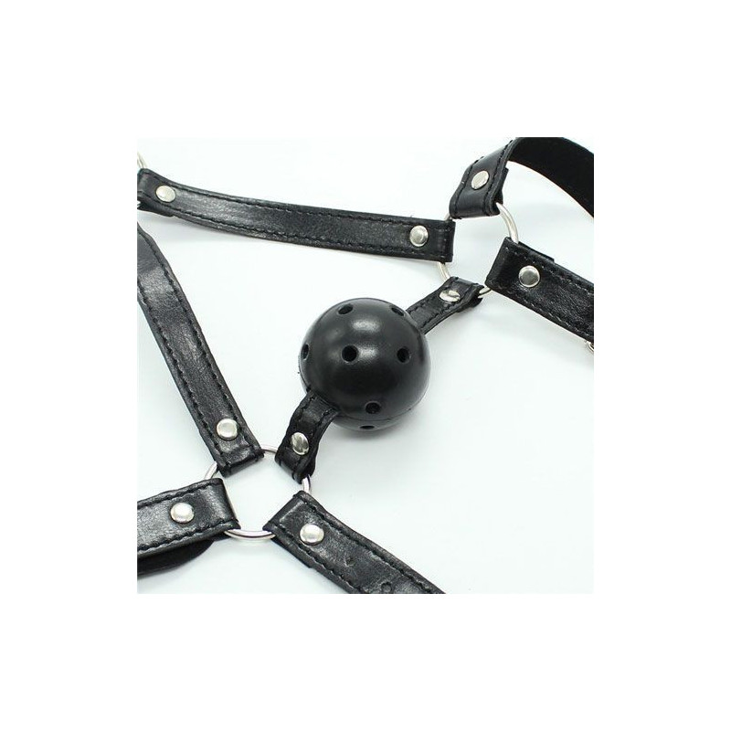 Imbracatura viso con morso head harness ball gag fetish bondage nero black costrittivo