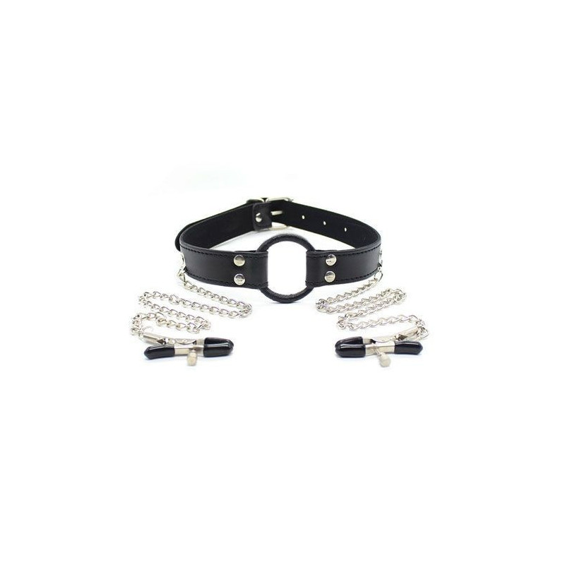 Ring gag nipples clamps pinze per capezzoli morso fetish bondage nero