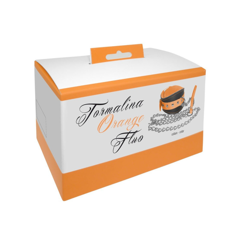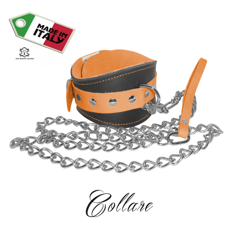 collare con guinzaglio in vera pelle e cuoio orange fluo bondage uomo donna