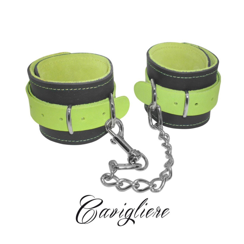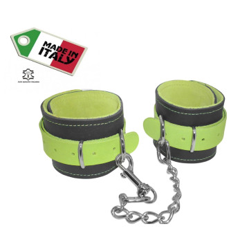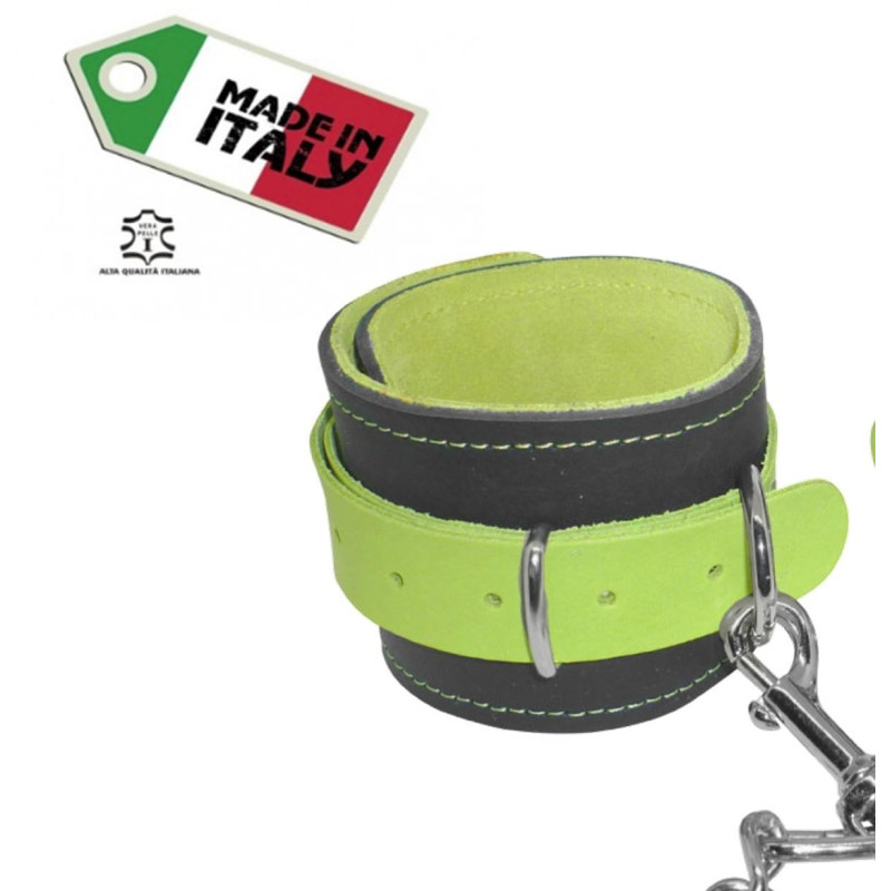cavigliere con gancio sexy bondage in vera pelle verde fluo costrittivo fetish