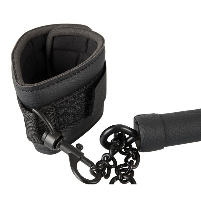 Barra divaricatrice stabile alle cui estremità possono essere fissati i polsini delle mani e dei piedi. I sistemi di ritenuta forniti in dotazione sono in similpelle, sono morbidamente imbottiti, possono essere regolati liberamente tramite la chiusura a velcro e sono fissati alla barra tramite moschettoni. La corta catena di collegamento in metallo può essere utilizzata per collegare i sistemi di ritenuta tra loro in modo da poterli utilizzare separatamente.