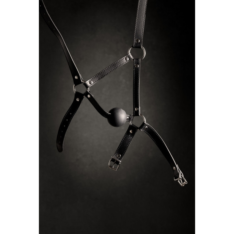 Imbracatura viso con morso Head Harness with Solid Ball Gag Black