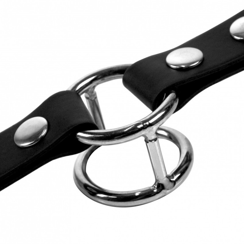 Per far salire di livello il tuo gioco orale e sperimentare l'arte di dare piacere attraverso la bocca come un vero sottomesso. Realizzato in pelle PU di alta qualità, questo bavaglio affidabile e regolabile garantisce un' esperienza orale soddisfacente e comfort mentre svolgi i tuoi compiti orali per il tuo Dom. Il centro è dotato di due robusti anelli in acciaio indossabile, che tengono la bocca aperta e ti impediscono di parlare o cercare aiuto. Parliamo di uno scambio di potere totale! Abbandona il controllo man mano che l'eccitazione del tuo partner cresce, guidando senza sforzo il suo piacere nella tua bocca spalancata.