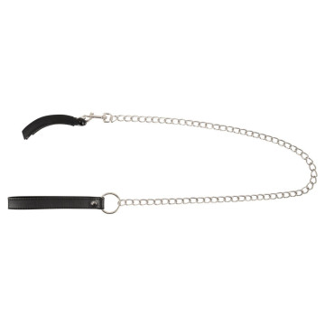 Il Pussy Clamp con guinzaglio di Bad Kitty combina un sofisticato morsetto per labbra con un guinzaglio a catena. Il morsetto dalla curvatura anatomica ideale si apre con una molla della gamba e viene semplicemente agganciato dopo essere stato posizionato attorno alle labbra vulvari. Il lungo guinzaglio a catena con cinturino in similpelle può essere rimosso dall'anello del morsetto grazie al moschettone.