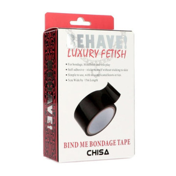 Bind Me Black è una valida ed eccitante alternativa a corde e manette ed è l'ideale per dare il via a scenari erotici alternativi. Sarà finalmente possibile avvolgere il/la partner con lucido scotch: attorno ai polsi o alle caviglie o per tappare la bocca e soffocare grida di piacere. Non appiccica e non strappa via peluria né crea irritazioni dopo la rimozione dalla pelle. Ideato per portare il gioco del bondage ad un livello superiore azzardando immobilizzazioni e dominazione. L'effetto wetlook lo rende attraente e dona un accenno kinky interessante, si addice di certo alle pratiche più estreme. 15 metri di lunghezza.