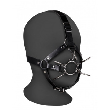 Imbracatura viso con morso Head Harness with Spider Gag and Nose Hooks Black