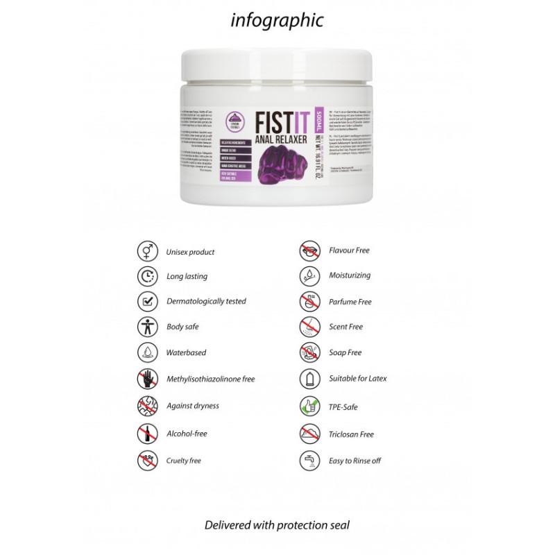 Fist It e un lubrificante a base d'acqua. Adatto all'uso con profilattici di lattice. Istruzioni per l'uso: applicare sul corpo la quantita di gel desiderata e ripetere l'applicazione a piacere. Solo per uso esterno. Tenere fuori dalla portata dei bambini. Conservare in luogo fresco e al riparo dalla luce.